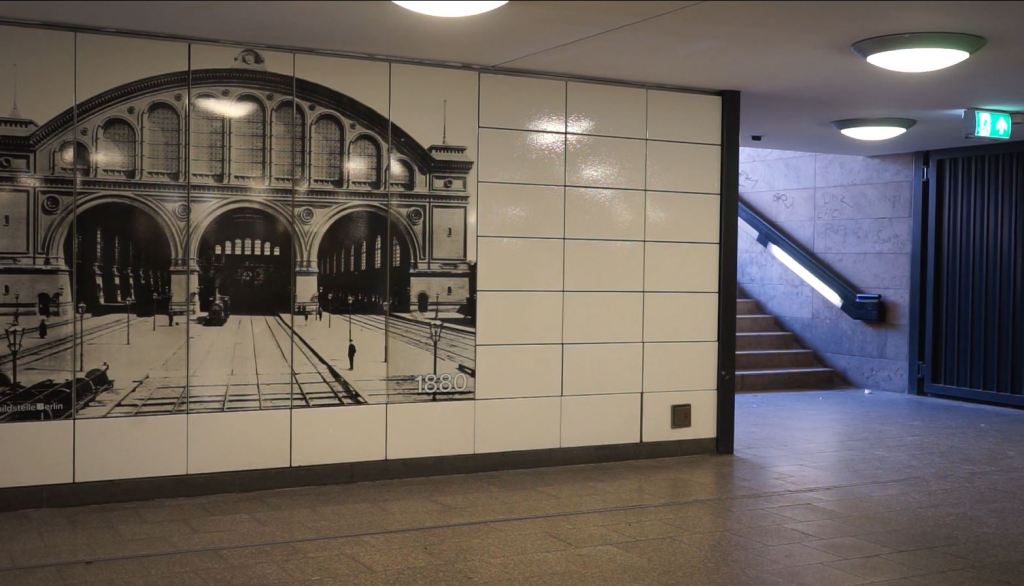 "Berlin Anhalter Bahnhof. Bis Mitte des 20. Jahrhunderts einer der wichtigsten Fernbahnhöfe der Stadt. Im Jahr 1929 bedienten 100 Züge zwischen 20.000 bis zu 60.000 Reisende.