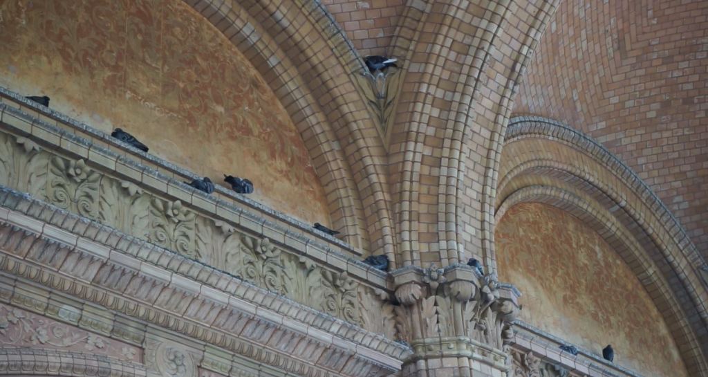 The station building was severely destroyed by the fascist war and the remains were demolished in 1959. Only the fragment of the portal with the allegorical figures Day and Night was preserved.