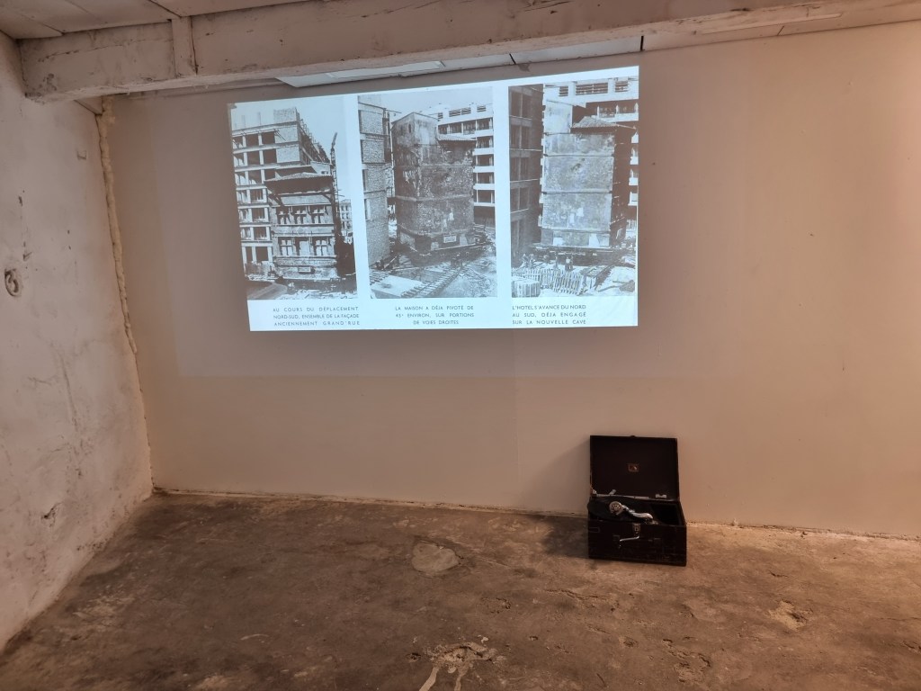 "Immeubles Mobilisés" is a video installation that refers to the relocation of the oldest remaining building of Marseille called "hotel de cabre". The video relates the relocation and rotation of buildings with moving construction site textiles and the sound of wind from an old and broken grammophone disc. "Immeuble" means building in french but comes from the word immobile.